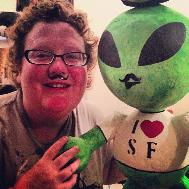 I love Halloween and always want to dress up. However, since Dad and I had been on this road trip, I didn’t really have supplies for a costume. Luckily, I saw an idea to paint my face as a doggie online and I found a super cheap face paint kit. I was all set. Dad was very resistant to dressing up. I did make him wear the alien glasses for a bit.