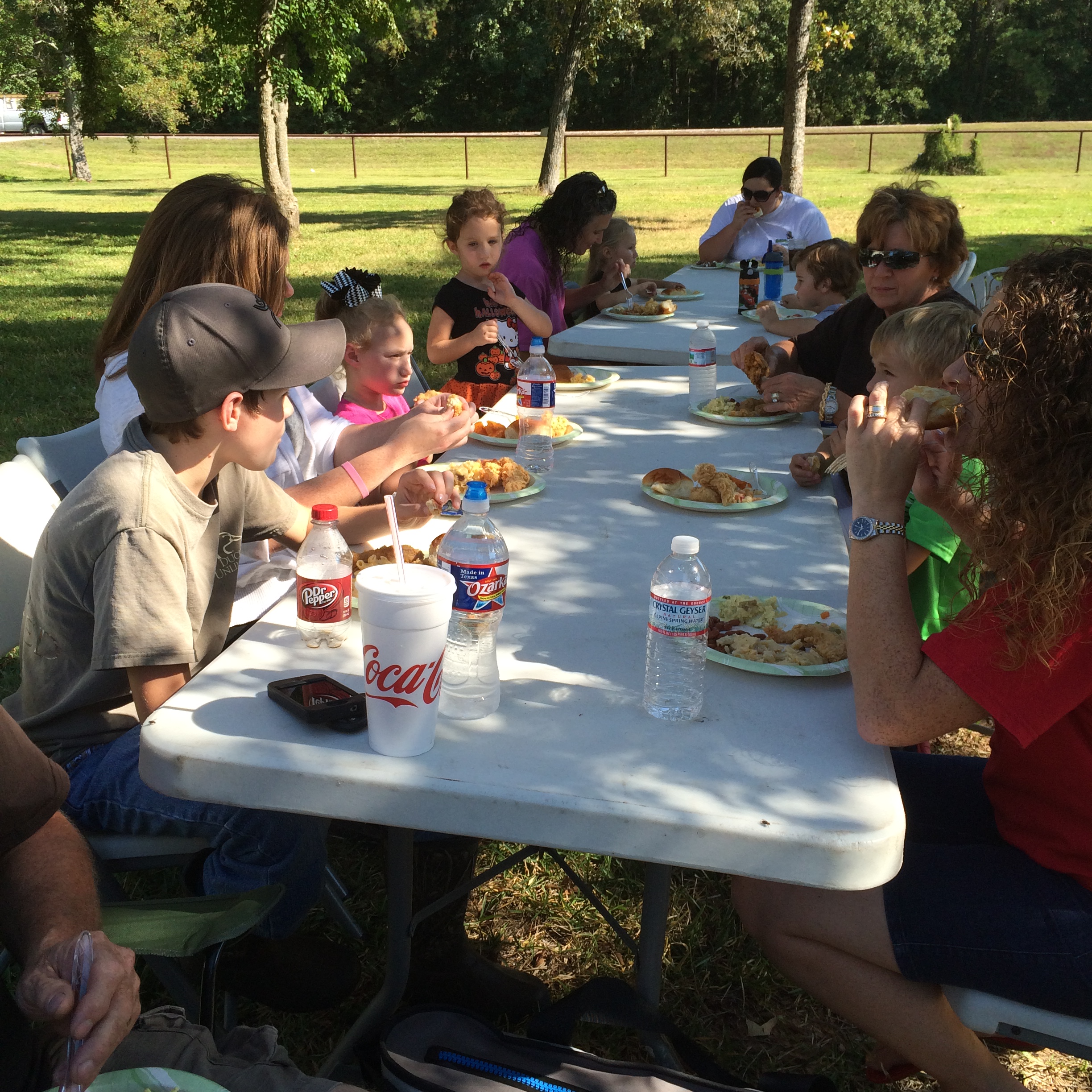 It does take a megaphone to organize the family. This is Aunt Sharlene, the hostess with the mostest!